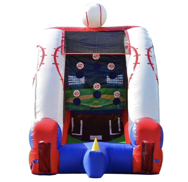 Featuring a design that captures the spirit of America's classic pastime, the Home Run Baseball Challenge 2 combines the challenge and excitement of baseball with the fun and thrills of an inflatable ride. Players step up to the plate and take their swings, aiming to hit one of the inflatable baseballs through the targets located across the field.